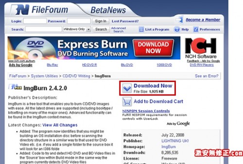 イメージファイルをDVDに焼けるフリーソフトである、『ImgBurn』をダウンロードしていきます。