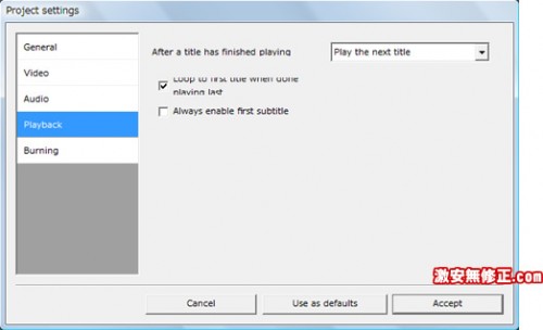 一番上の「After a title has finished playing」は一つのタイトル(動画)を再生した後の行動を指定する項目ですが、デフォルトの「Play the next title」でいいですね。一つの動画を再生した後、次の動画を再生するという意味です。